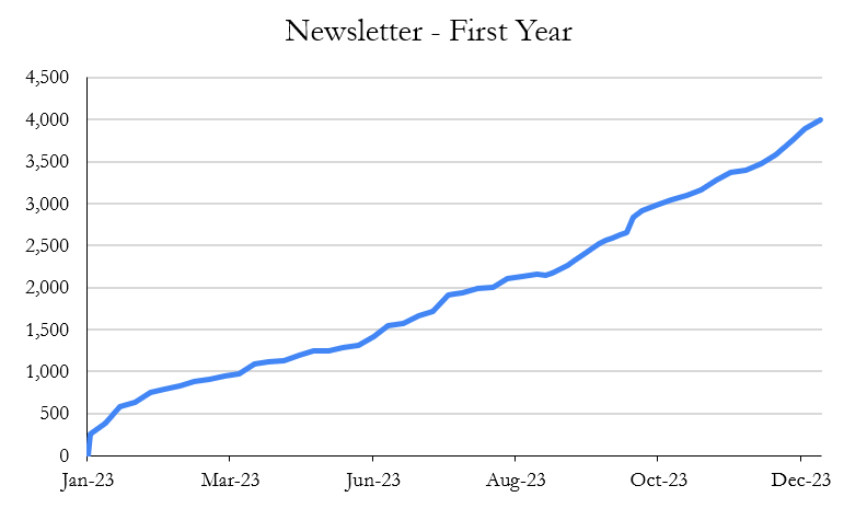 First and foremost, I want to keep having fun with the page and the newsletter. More specifically, I have a few things I would like to achieve in 2024: