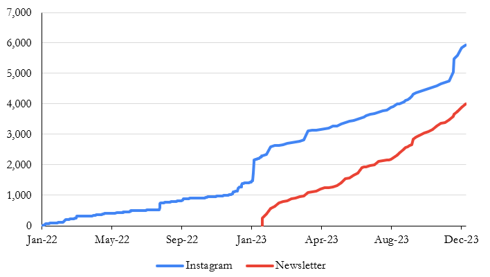 I love numbers, and I wanted to include a few graphs to show our growth since starting the newsletter and the Instagram page alongside some commentary.