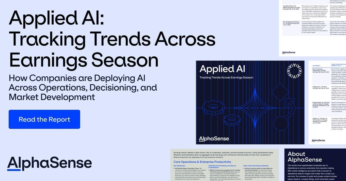 Earnings season delivers a data-driven view of companies, industries, and the broader economy. Using AlphaSense’s Deep Research and Generative Grid, we aggregate recent earnings and conference call transcripts to show how companies in diverse industries are deploying AI across business functions.