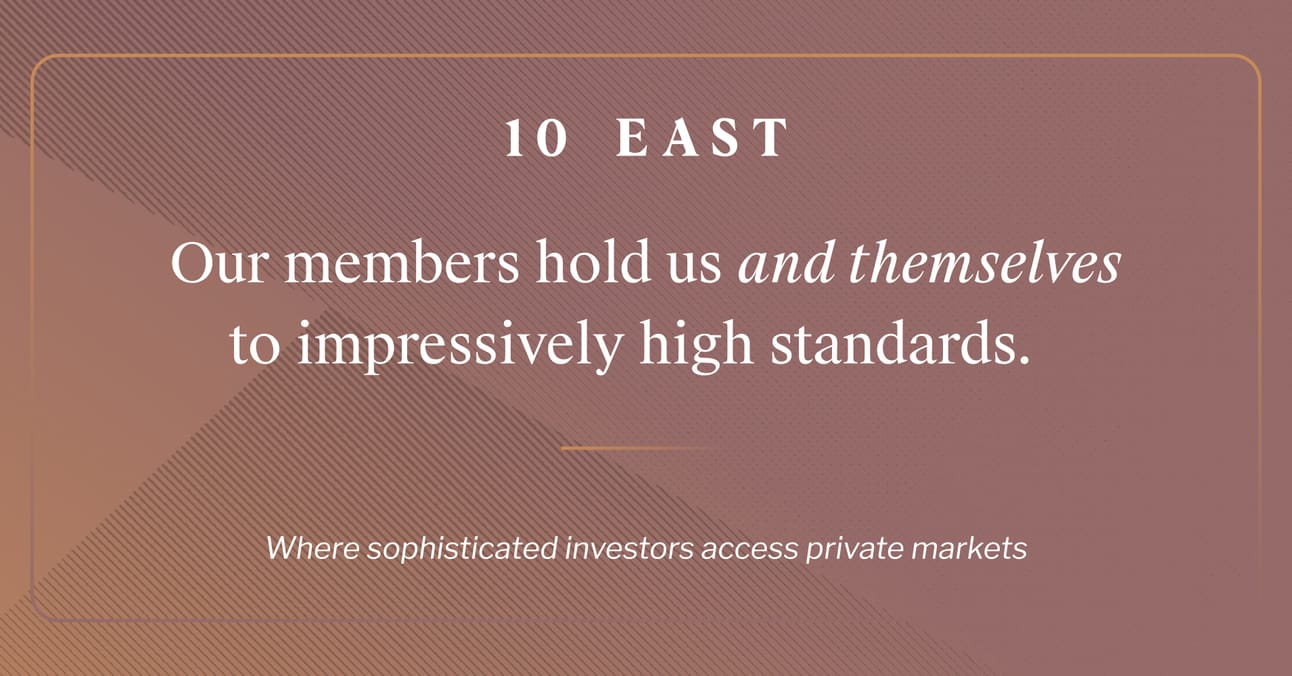 10 East is where founders, executives, and portfolio managers from industry-leading firms diversify their personal portfolios.