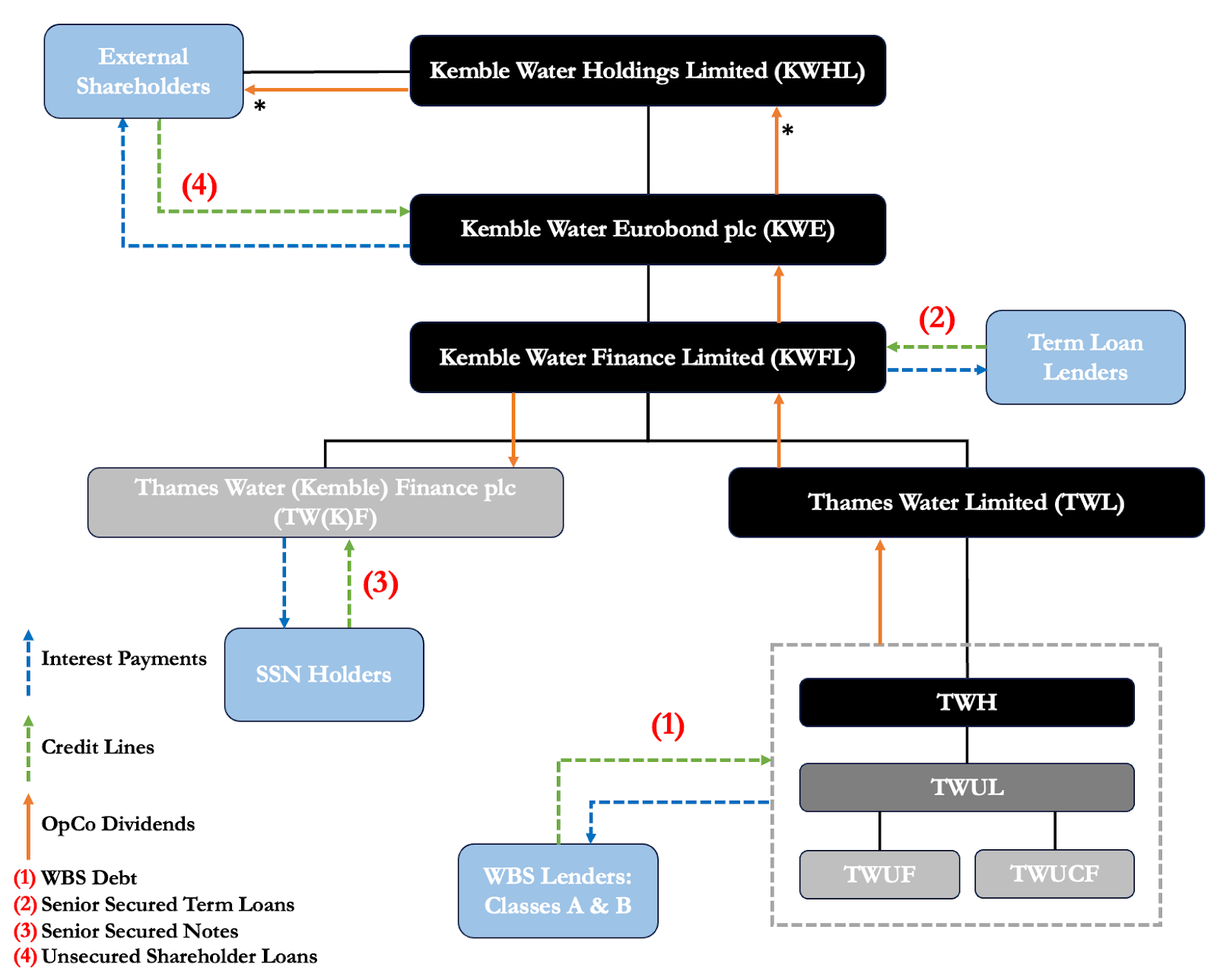 Kemble Water Holdings Limited (KWHL): The ultimate parent of the Thames Water group, owned by the Macquarie-led consortium of institutional investors.