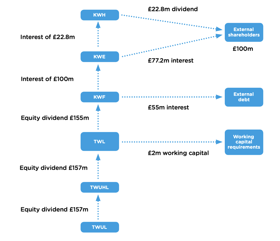 Moving outside of the three ring-fenced companies, we have Thames Water Limited (TWL) and an array of Kemble companies. Here is a guide to the rest of these companies, and we’ve put Figure 8 in again for you to see these entities side-by-side with the corporate structure chart [28].