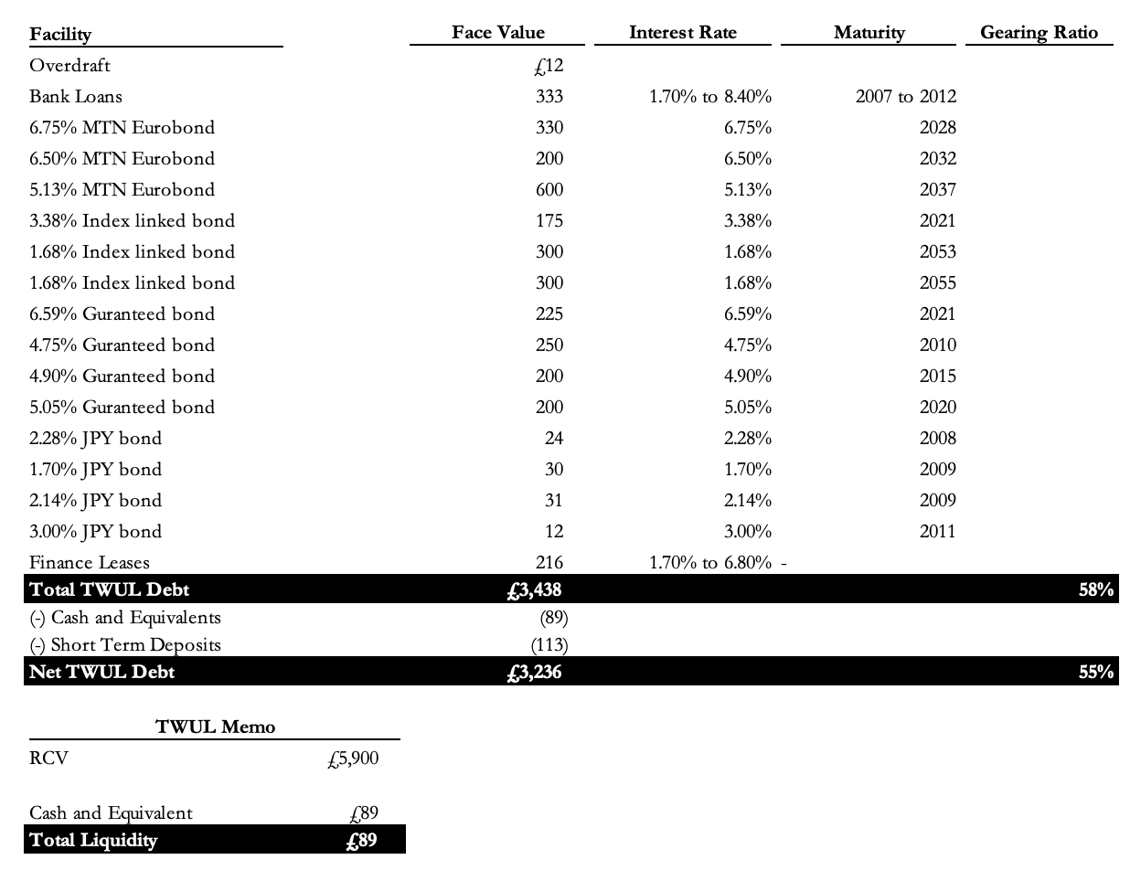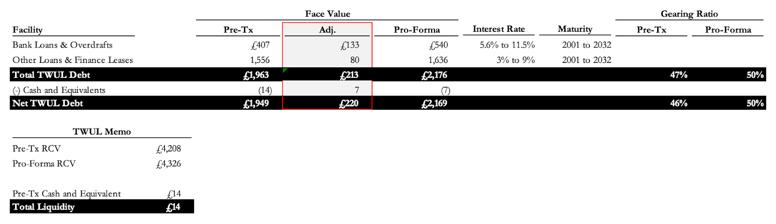 So, what did this debt mean for the key financial covenants that TWUL was being assessed by?