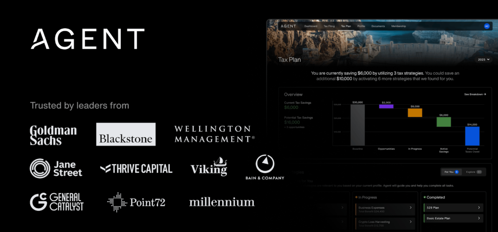 This is why, when Agent Tax reached out, I was so excited to learn more, and I am now excited to bring this service to you. Agent is a modern tax strategy firm purpose-built for investment professionals. You will receive a dedicated expert tax advisor (yes, human) who will leverage technology to proactively plan, prepare, and optimize your taxes.