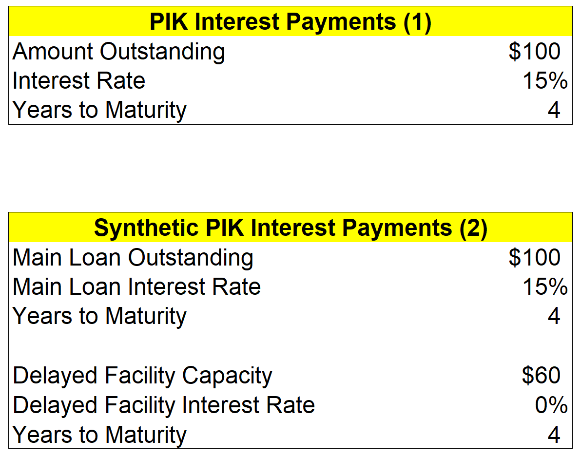 Figure 3: PIK vs. Synthetic PIK Payment Structure. Assumes Main and Delayed Facility are provided by the same creditor.